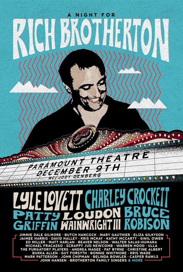 In addition, Rich himself will perform with two of his current music projects, trad-Irish ensemble Ulla and local Americana supergroup Purgatory Players. The event also will include the Brotherton Family Singers, featuring Rich’s siblings. The house band will include Scrappy Jud Newcomb on guitar, Warren Hood on fiddle and guitar, Marty Muse on pedal steel, Guy Forsyth on harmonica, and drummers Mark Patterson and John Chipman. Legendary Austin radio DJ Jody Denberg will serve as master of ceremonies.